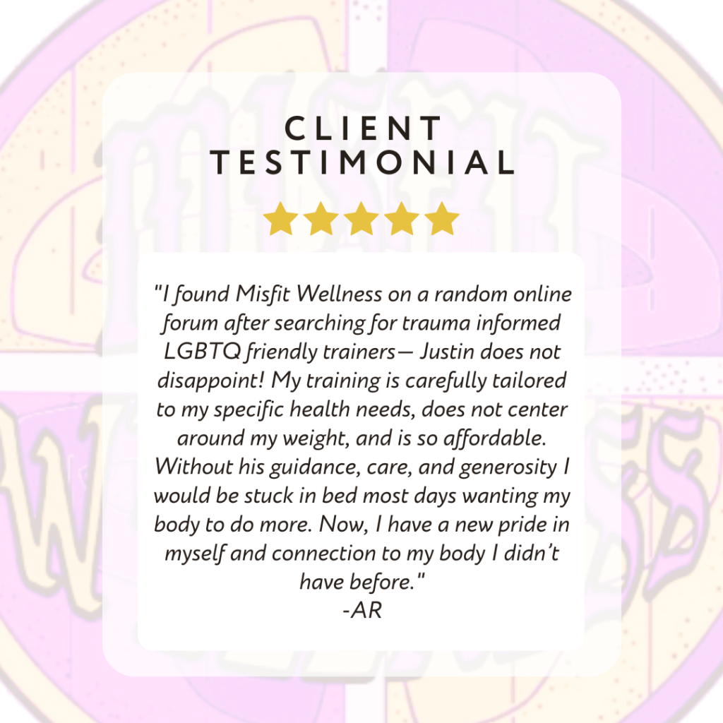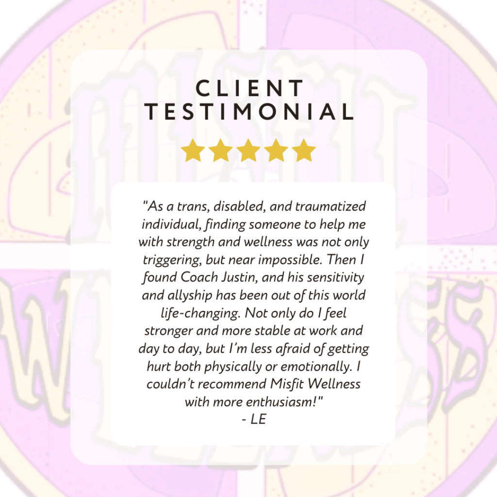I used to do CrossFit and HIIT workouts, but I never got any stronger or developed any skills. Coach Justin has taught me the skill of strength building and made me stronger all while keeping me injury free. Happy to be on Team Misfit!
